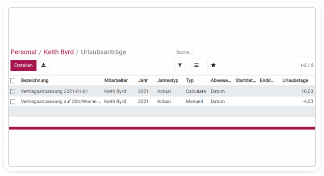 Example: Employee moves to a part-time contract in August system recalculates remaining leave based on new terms.