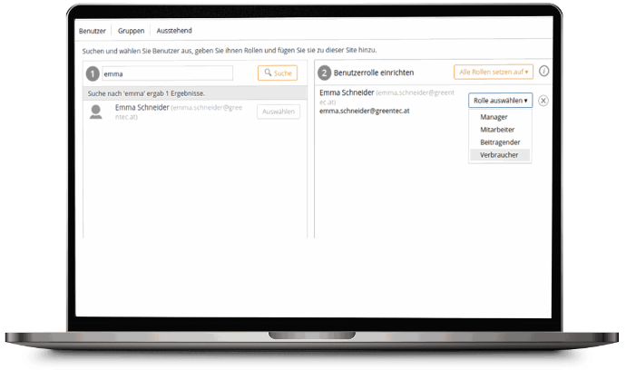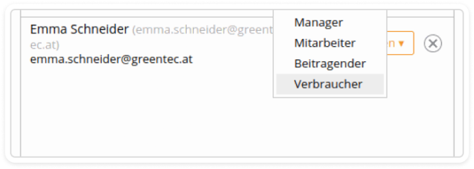 Example: On Emma Schneider’s profile, the “Contracts” folder is visible only to authorized users from specific groups.