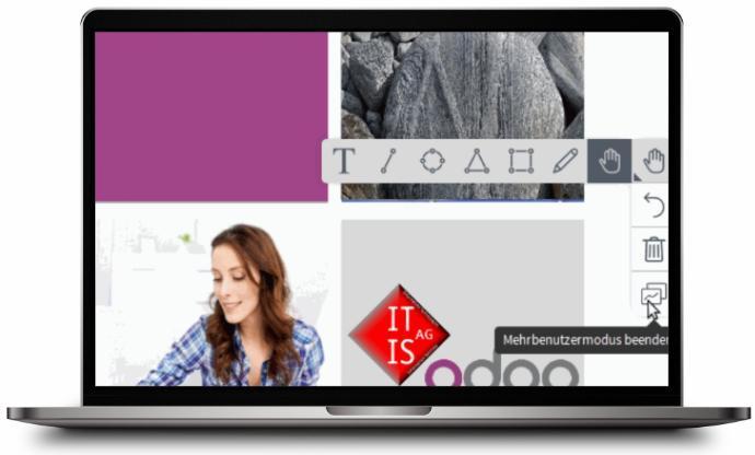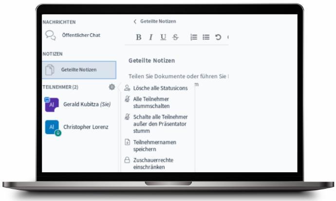Bildschirmfreigabe, Präsentationen und Whiteboard mit Notizfunktion