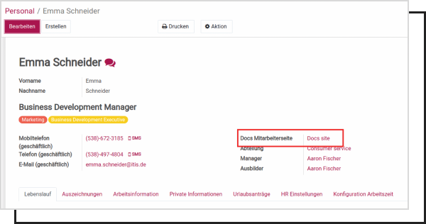 Direct Access: A link to the employee’s document page appears in their contact profile within ITISeasy.business.