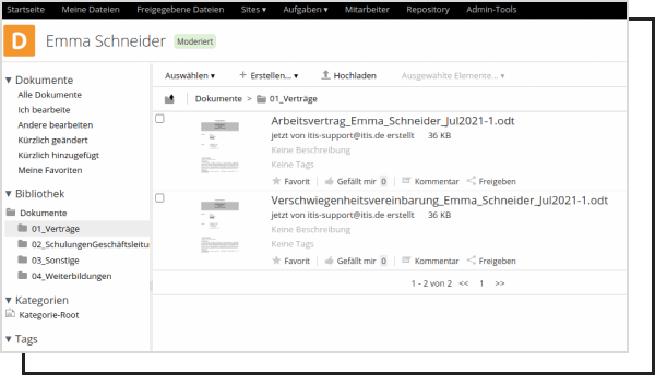 Each employee gets their own digital page in the document system, where documents are automatically categorized and stored in structured folders.