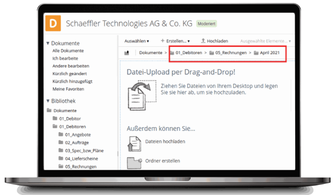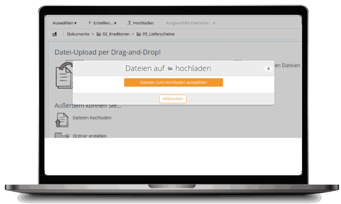 Just drag-and-drop the document from your desktop directly into the desired folder via the Dropzone interface.