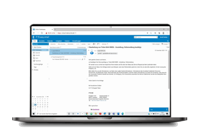 ITISeasy.email supports real-time chats, offers an integrated calendar, smart email management and mobile-optimized views.
