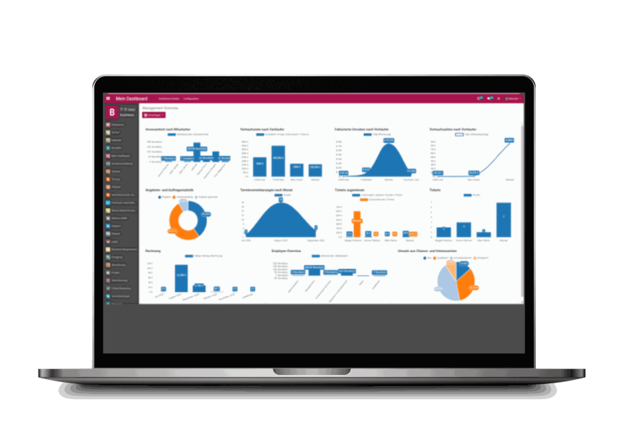 With ITISeasy.business, empower your leadership team to make smart, data-driven decisions through fully configurable management dashboards. Visualize key metrics, KPIs, and real-time data from across your ERP—all in one place.