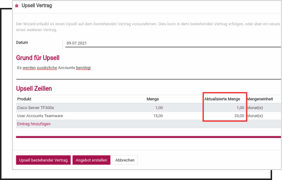 Right on the contract itself, you have the option to attach the reason for the upsell, the newly added products, and the updated quantities in the following form
