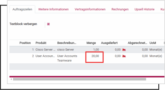 Similar to the upsell, the updated quantities are reflected in the proposal PDF and the order lines. Naturally, this also results in changes to the proposal prices.