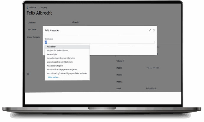 Example: Assigning the contact to the “Management” department through a dropdown selection.